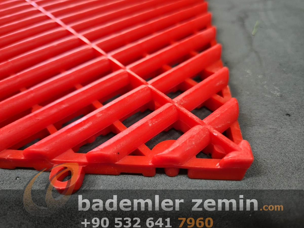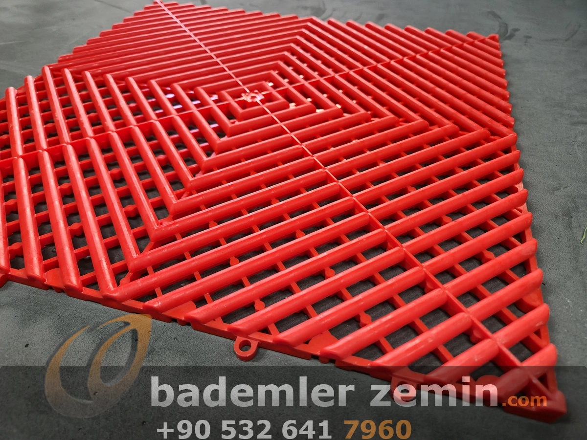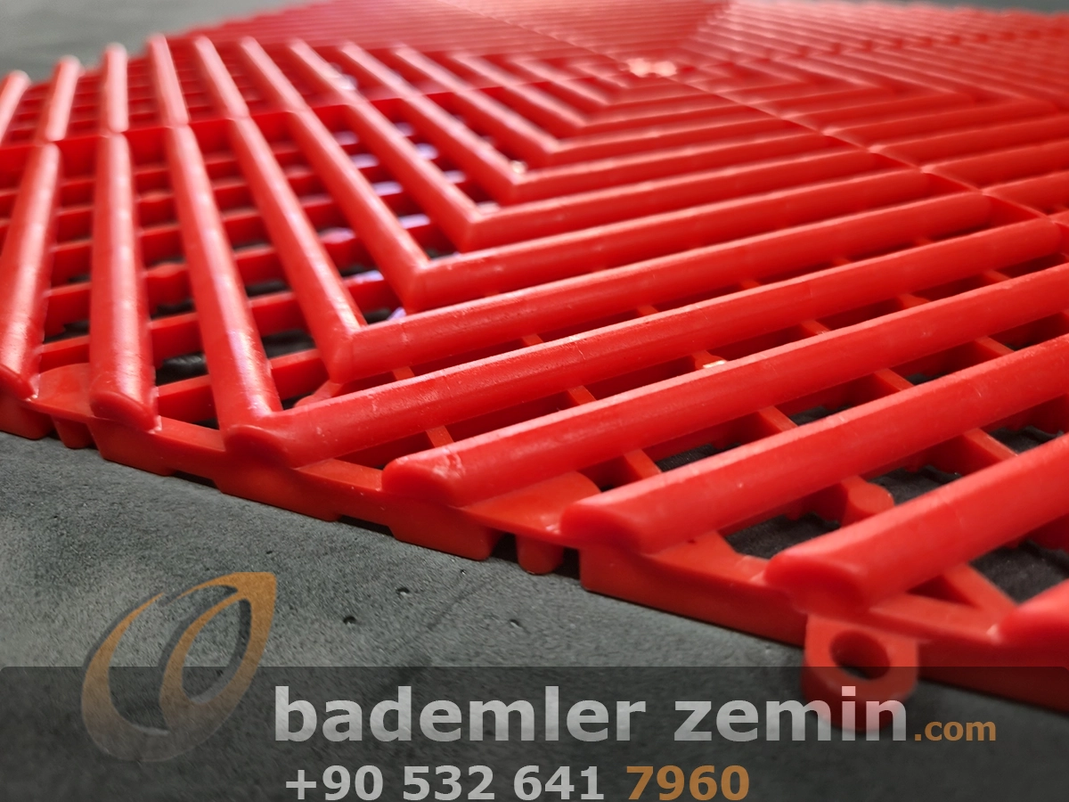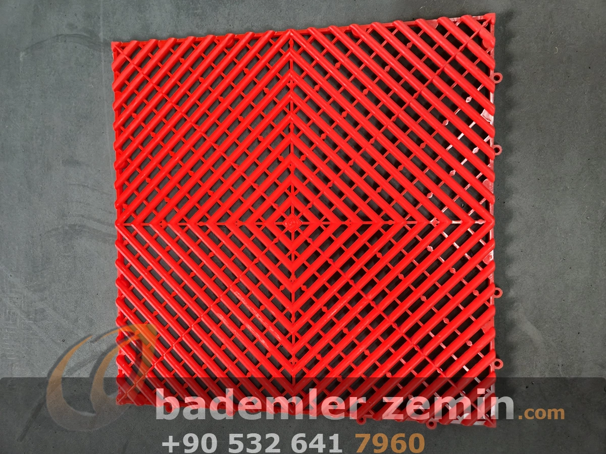 Kırmızı Geçmeli Karo Zemin, Dayanıklı yapısı ve modern görünümüyle dikkat çeker. Farklı renkleriyle ıslak ve yoğun kullanılan alanlar için ideal bir çözümdür. Oto galeriler, oto yıkama istasyonları, tamirhaneler ve showroomlarda hem güvenli hem de şık bir zemin sunar. Altından su geçirebilen yapısı sayesinde zeminlerde su birikimi olmaz, kaymaz yüzeyi ile güvenlik sağlar.