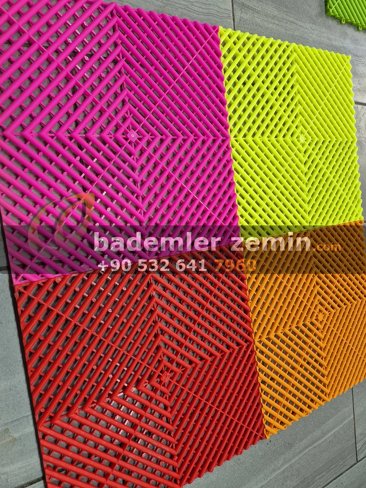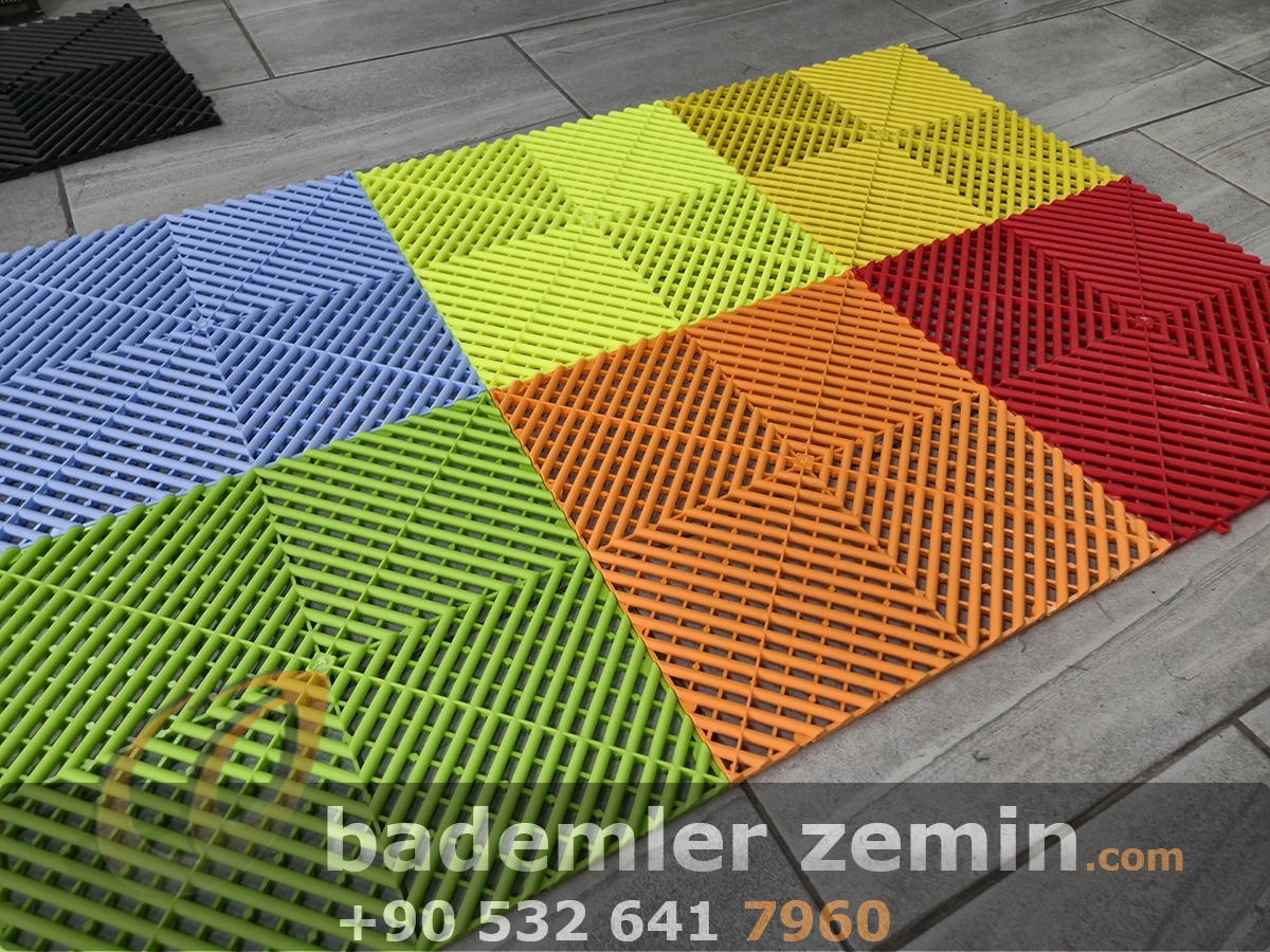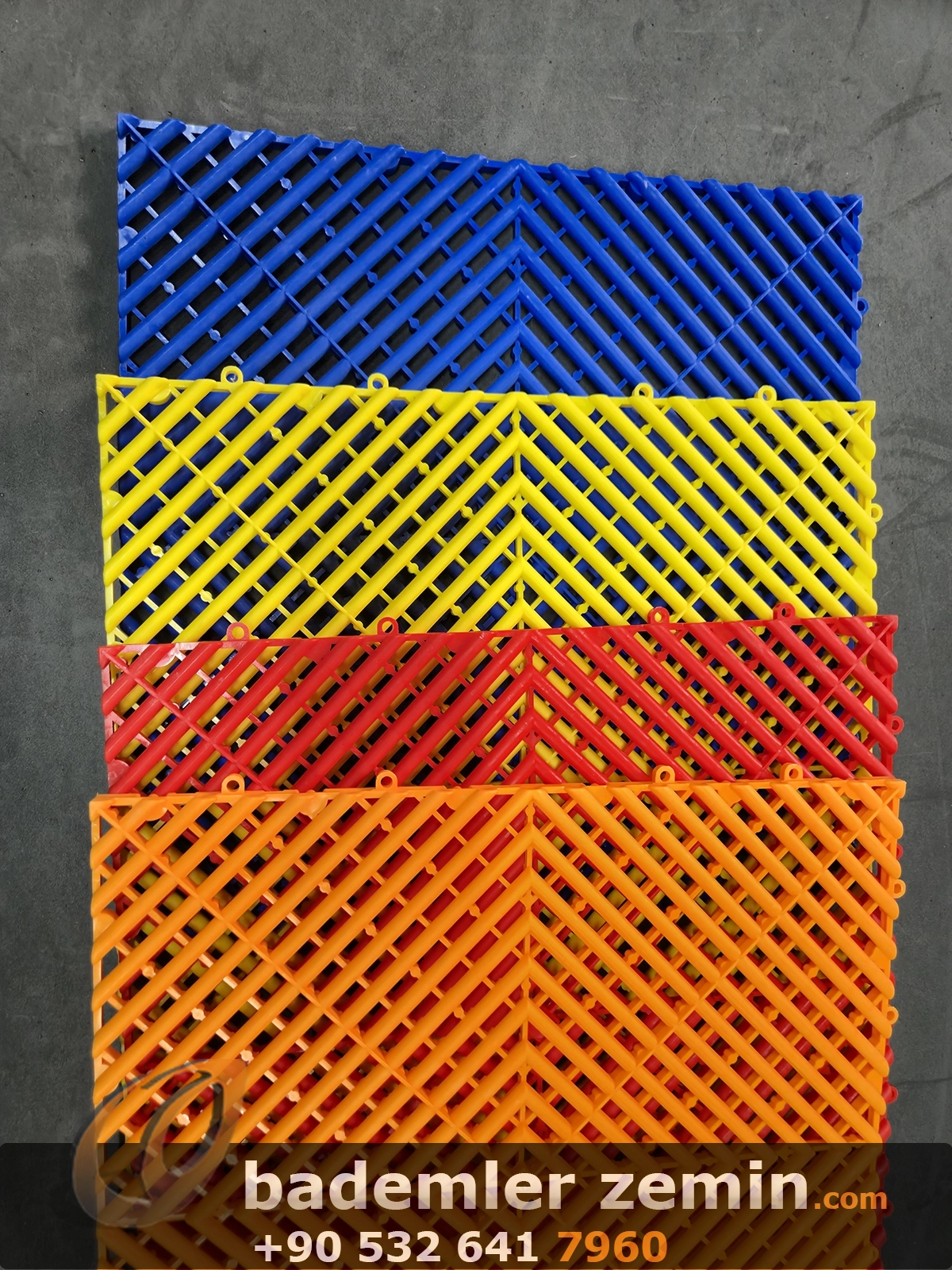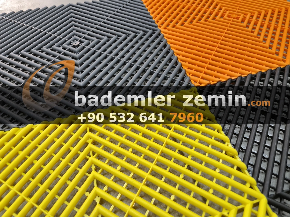 Sarı Geçmeli Karo Zemin, Dayanıklı yapısı ve modern görünümüyle dikkat çeker. Farklı renkleriyle ıslak ve yoğun kullanılan alanlar için ideal bir çözümdür. Oto galeriler, oto yıkama istasyonları, tamirhaneler ve showroomlarda hem güvenli hem de şık bir zemin sunar. Altından su geçirebilen yapısı sayesinde zeminlerde su birikimi olmaz, kaymaz yüzeyi ile güvenlik sağlar.