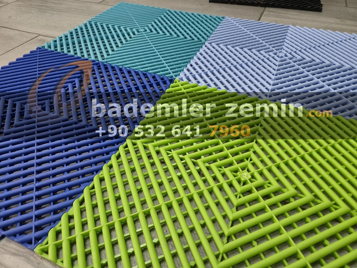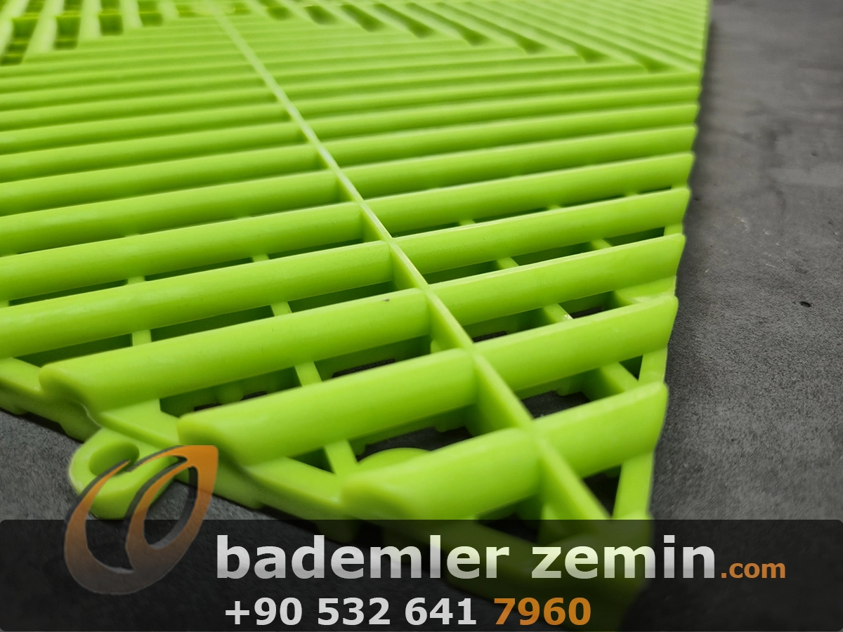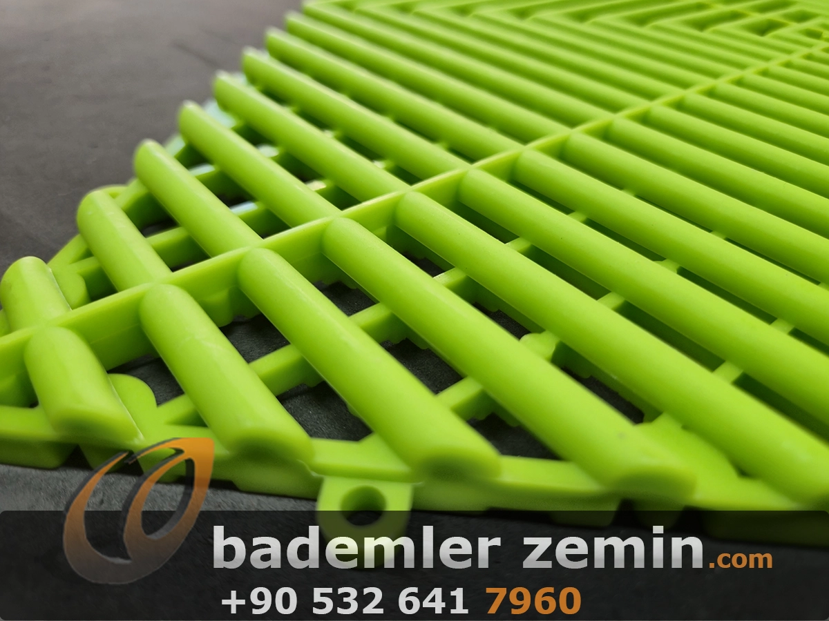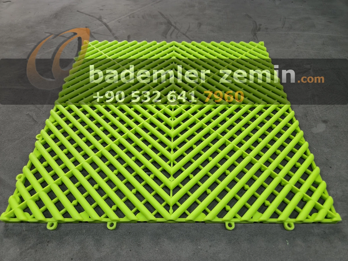 Yeşil Geçmeli Karo Zemin, Dayanıklı yapısı ve modern görünümüyle dikkat çeker. Farklı renkleriyle ıslak ve yoğun kullanılan alanlar için ideal bir çözümdür. Oto galeriler, oto yıkama istasyonları, tamirhaneler ve showroomlarda hem güvenli hem de şık bir zemin sunar. Altından su geçirebilen yapısı sayesinde zeminlerde su birikimi olmaz, kaymaz yüzeyi ile güvenlik sağlar.