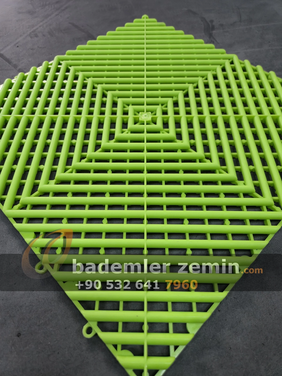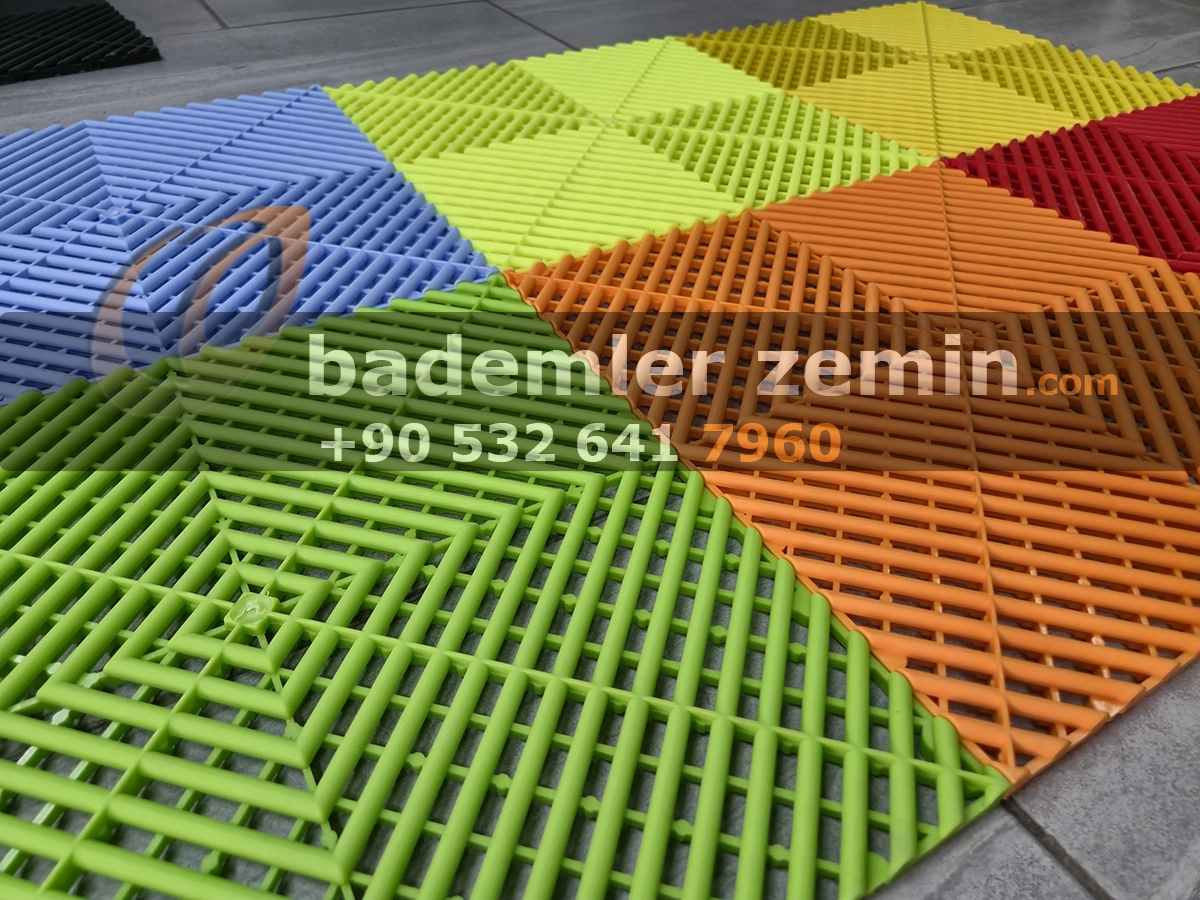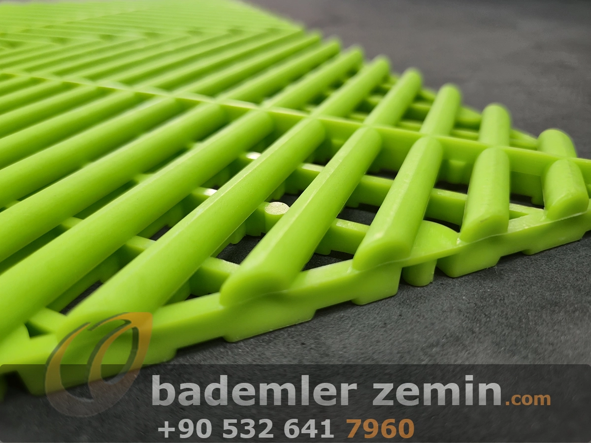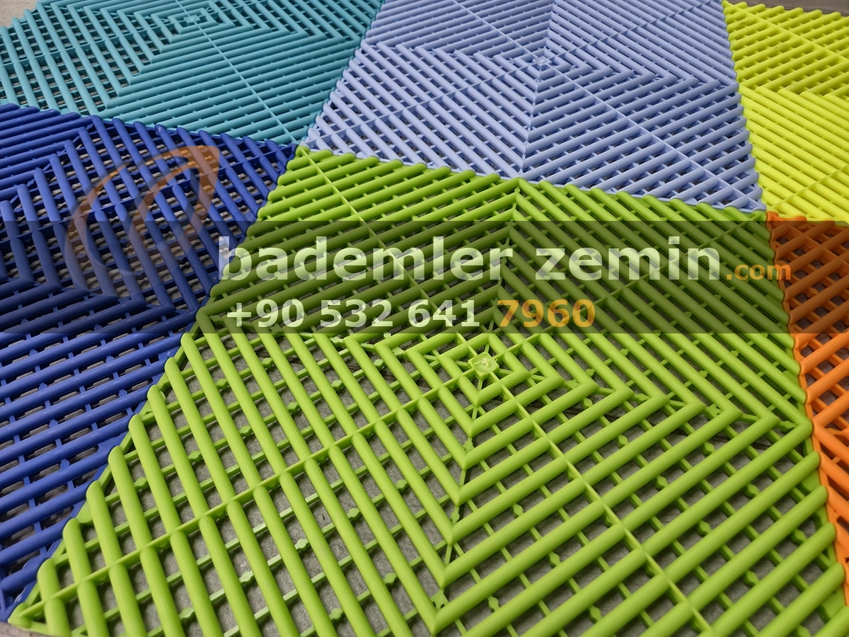 Yeşil Geçmeli Karo Zemin, Dayanıklı yapısı ve modern görünümüyle dikkat çeker. Farklı renkleriyle ıslak ve yoğun kullanılan alanlar için ideal bir çözümdür. Oto galeriler, oto yıkama istasyonları, tamirhaneler ve showroomlarda hem güvenli hem de şık bir zemin sunar. Altından su geçirebilen yapısı sayesinde zeminlerde su birikimi olmaz, kaymaz yüzeyi ile güvenlik sağlar.
