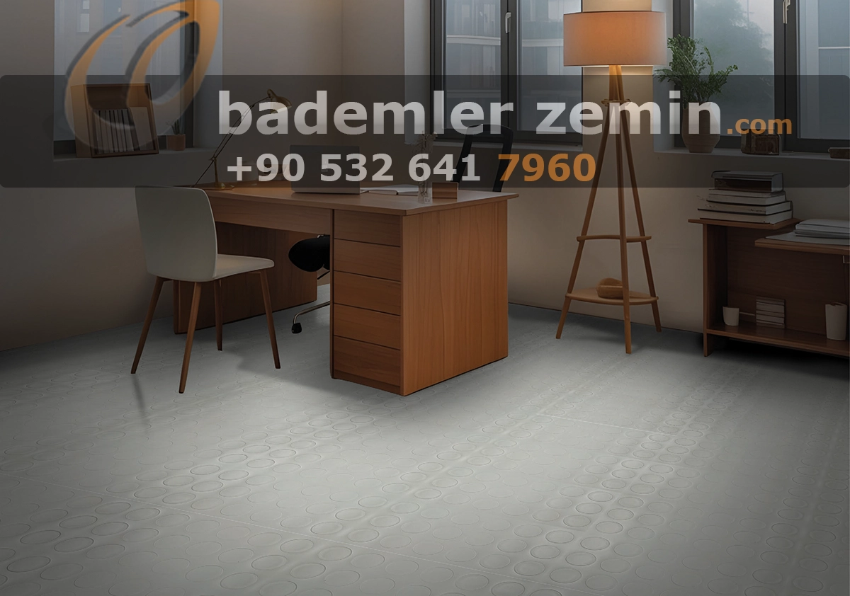 Gri Paralı Pvc zemin kaplaması kabartmalı yüzey deseni ile dikkat çeker. Nokta dokusu zeminde ekstra tutuş ve denge hissi verir. Esnek PVC yapı darbe etkisini dağıtır ve konforlu kullanım sağlar. Atölye, servis ve çalışma alanlarında sağlam zemin karakteri sunar.